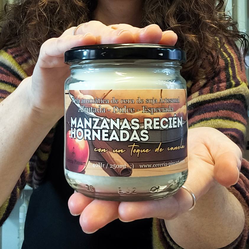 Cera vegetal de soja con aroma de Manzanas recién horneadas con un toque de canela.