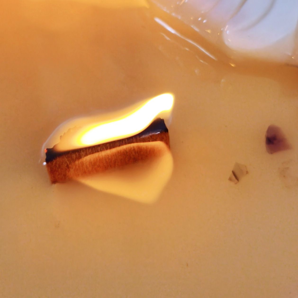 Cuando haya apagado la vela, tan solo no la toque, de esta manera se vuelve a solidificar la cera líquida y la mecha queda intacta para poder ser encendida de nuevo al cabo de una horas.