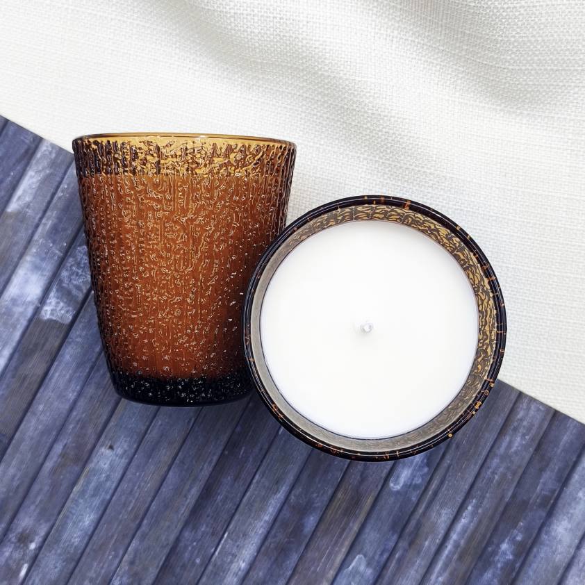 Las velas aromáticas están hechas a partir de cera de soja, de origen 100% vegetal, cuya textura cremosa ofrece la posibilidad de adaptarse a todo tipo de soportes y recipientes.