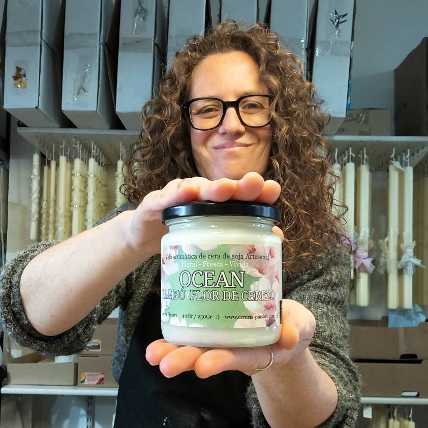 Esta vela aromática de cera de soja con esencia de mimosa está realizada con cera vegetal de soja, esto hace que su textura sea cremosa. Hecha a mano una a una con mucho mimo y dedicación.